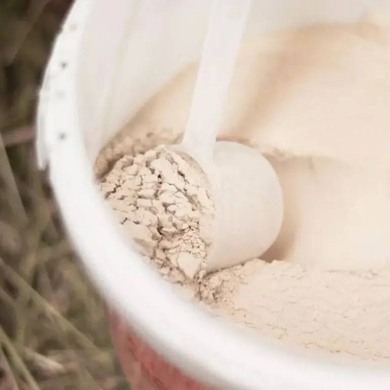 – 30 g par jour en cure de fond pendant 50 jours dans la ration en humidifiant