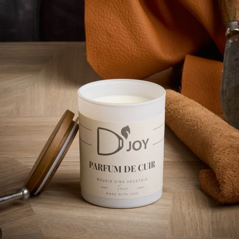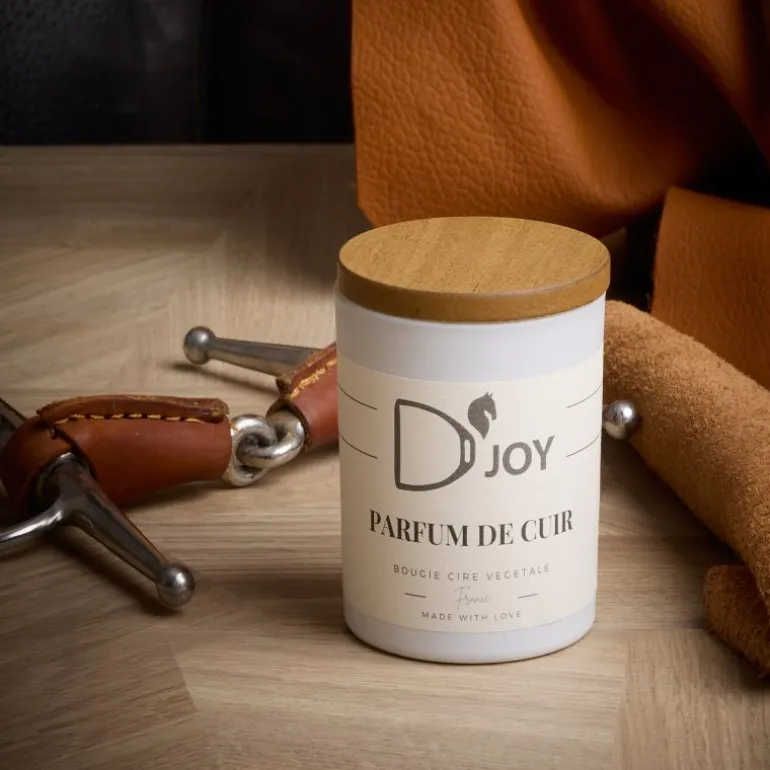 La bougie Parfum de cuir D’joy cheval et senteurs, vous transportera au cœur de la sellerie avec les effluves de cuir et de baume.