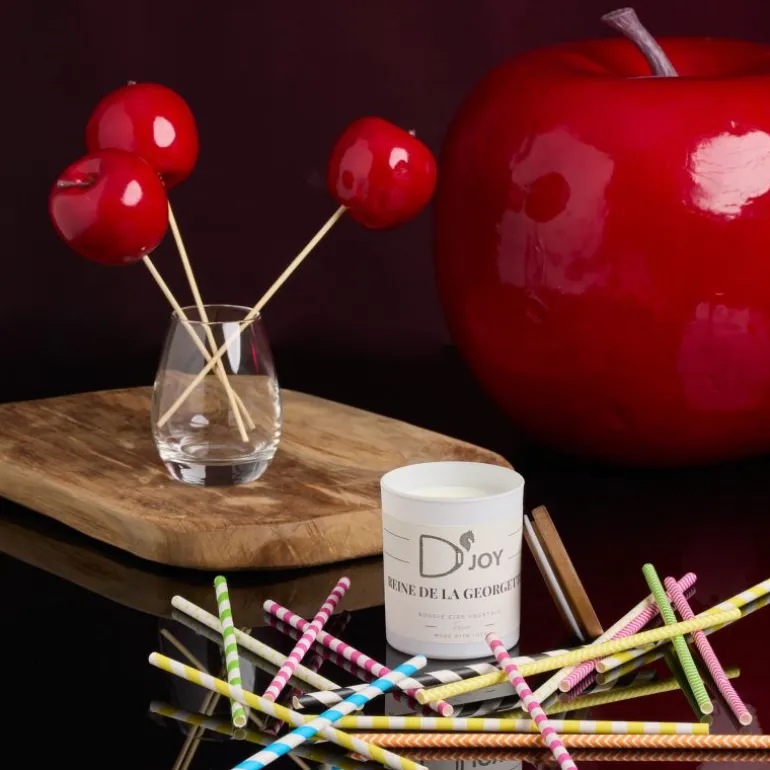 La bougie grand format D’joy Reine de la Georgette cheval et senteurs évoque un parfum gourmand de pomme d’amour.