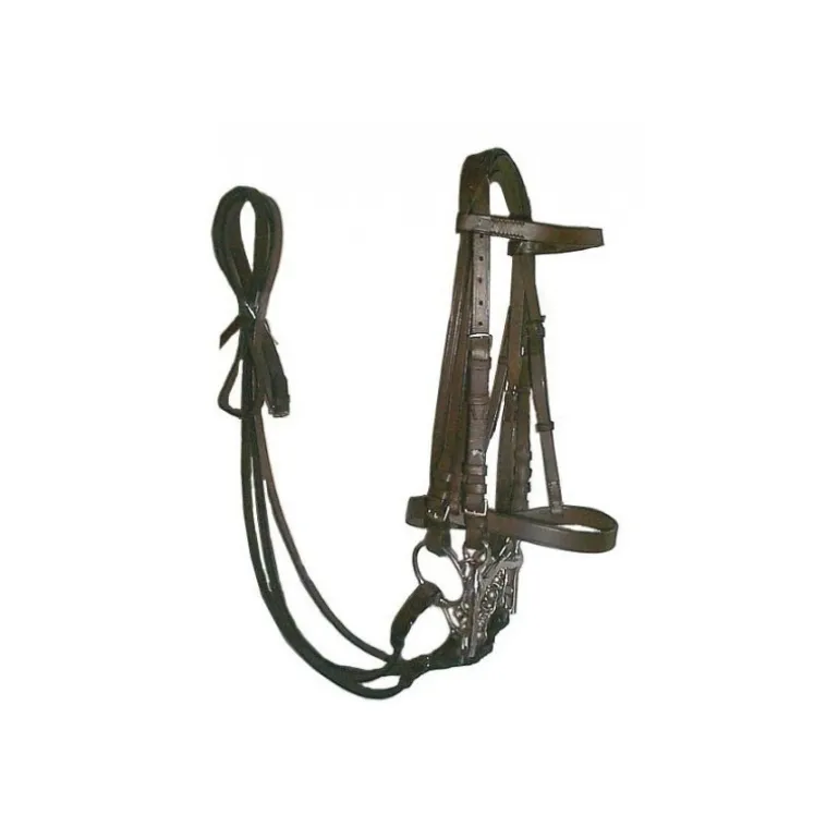 Cette bride est vendue avec deux paires de rênes lisses. Les mors ne sont pas compris avec la bride.