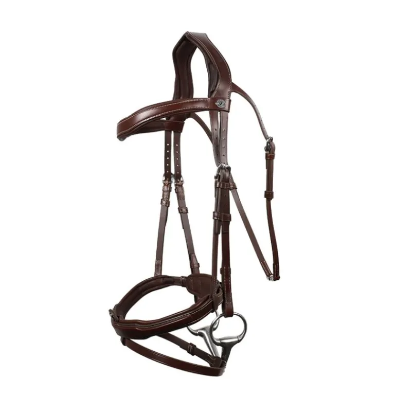 Avec son frontal, sa têtière et sa muserolle matelassés et doublés en veau souple, le bridon Signature Sport Antarès offre un maximum de confort à votre cheval.