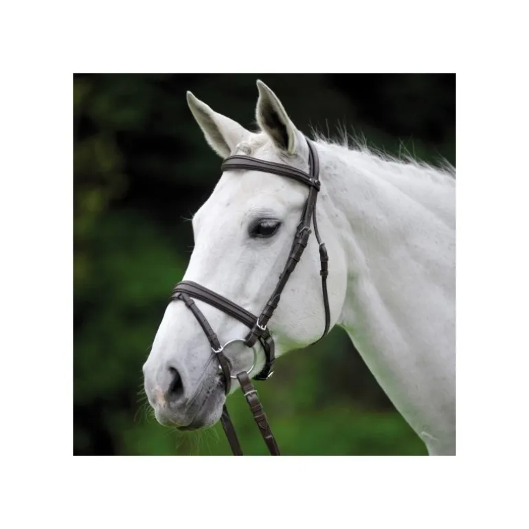 Sa muserolle plus large sur sa partie centrale est de type Pull-back combinée. Elle est articulée et munie d’anneaux de chaque côté afin de provoquer un mouvement de renvoi.