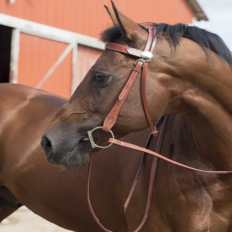 Avec ses jolis motif plumes et ses surpiqûres blanches, le bridon western Two Tone Westride offrira un look élégant à votre cheval
