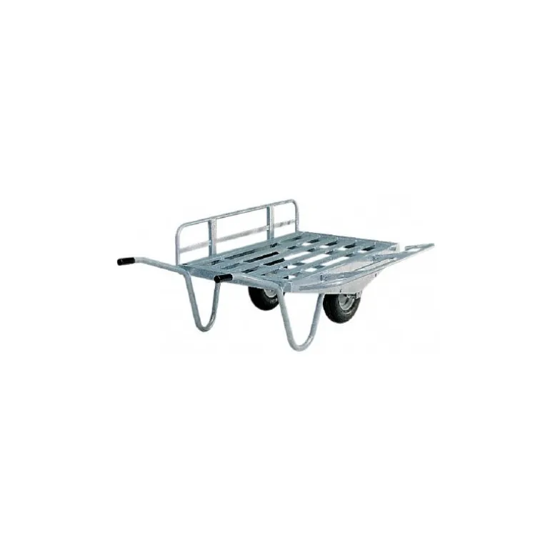 Utile pour transporter facilement vos bottes de paille et balles de foin, cette brouette fourragère est conçue dans un robuste acier galvanisé. Grâce à ses deux roues 400 x 8 4 plys gonflables et son châssis large avec essieu centré, cet outil bénéficie d’une répartition idéale de poids et d’un excellent équilibre. Grâce à ses côtés surélevés stabilisant la charge, ce charriot se révèle particulièrement confortable à conduire.
