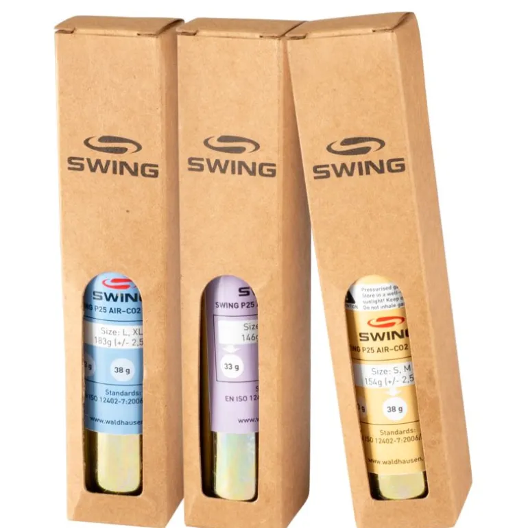 La cartouche de CO2 de rechange originale pour le gilet airbag Swing P25 Air permet une réactivation simple et rapide suite à un déclenchement.