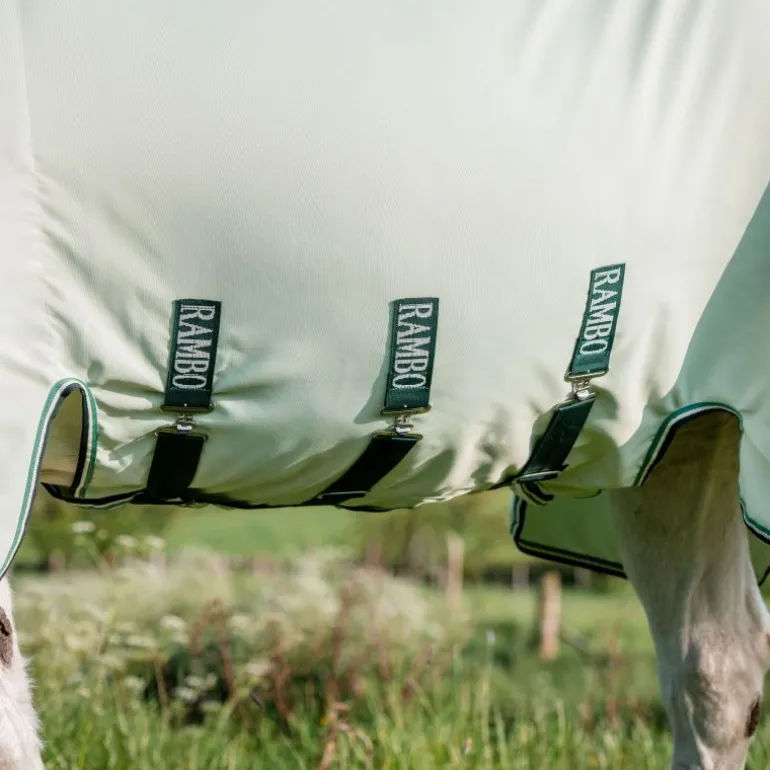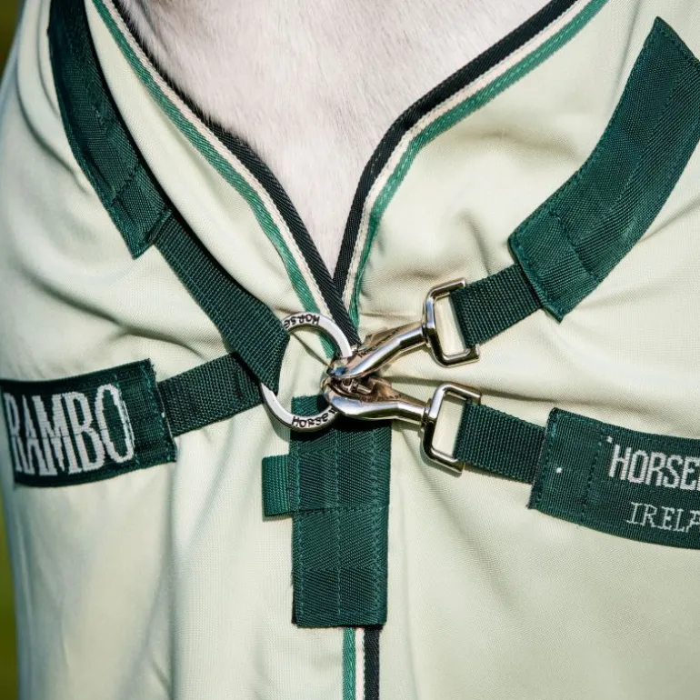 En plus des longs rabats ventraux avec des sangles Velcro, trois sursangles enveloppent le ventre du cheval pour une protection supplémentaire.