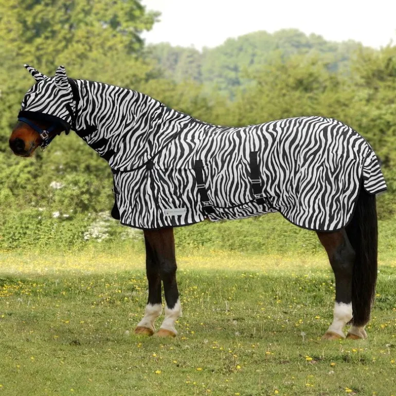 Confectionnée dans un tissu zébré noir et blanc, cette couverture exerce un effet mécanique permettant d’invisibiliser votre monture aux yeux des mouches et moucherons.