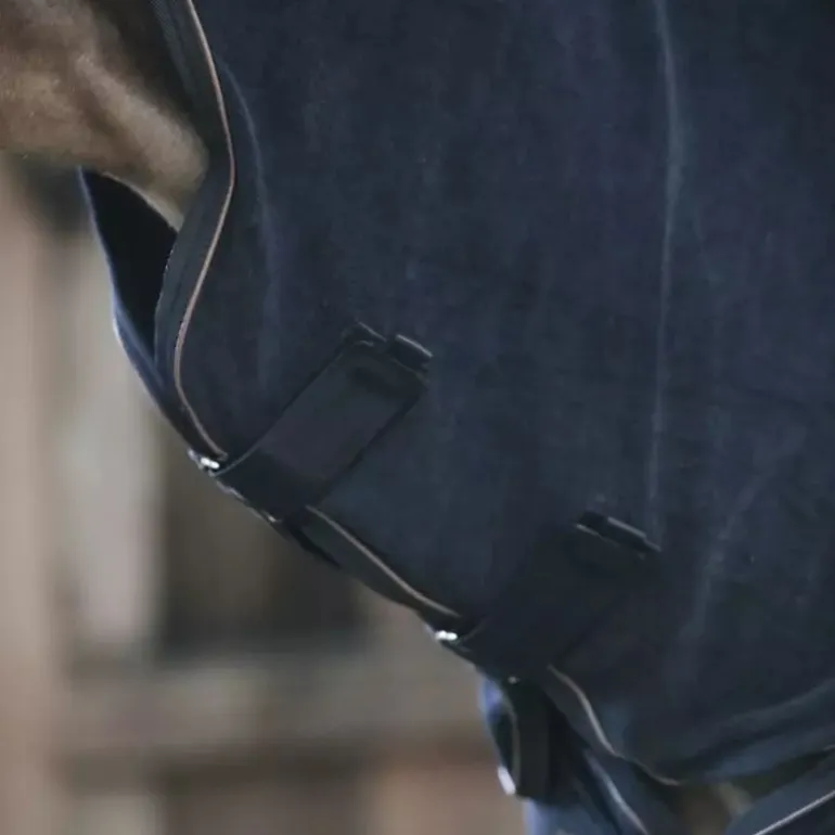 Attention : Veillez à laisser votre cheval attaché lorsqu’il porte cette couverture car elle ne comporte pas de sangles ventrales mais aussi car les copeaux et la paille sont absorbés par le tissu et sont donc très difficile à enlever.