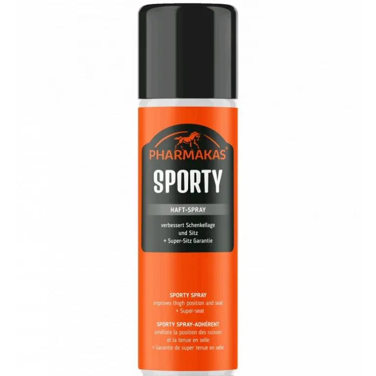 Avec sa garantie de super tenue en selle, le spray adhérent Sporty de Pharmakas est le secret pour une meilleure position des cuisses et une assiette parfaite.
