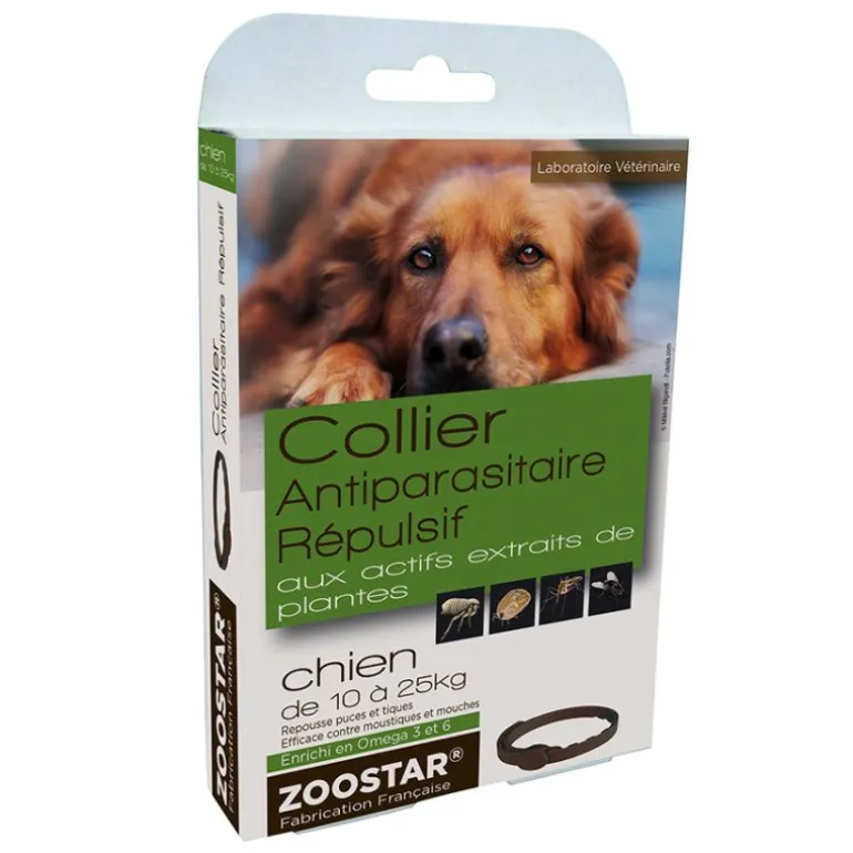 Grâce à l’association synergique de 2 actifs extraits de plantes (lavandin et pyrèthre végétal), le collier pour chien antiparasitaire ZOOSTAR repousse efficacement les principaux parasites (puces et tiques).