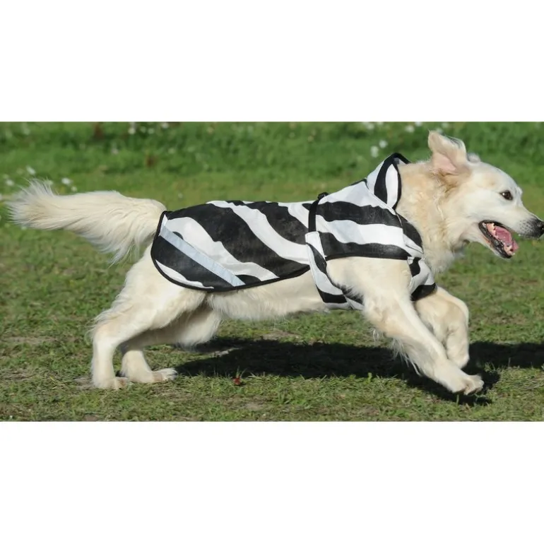 Confortable, la couverture Zebra conçue par Bucas est composée dans un matériau léger et respirant. Ce manteau d’été protège efficacement votre chien des rayons UV et des parasites. Ses zébrures répulsives sont idéales pour les chiens foncés, au poil épais, ayant des problèmes de peau ou des allergies.