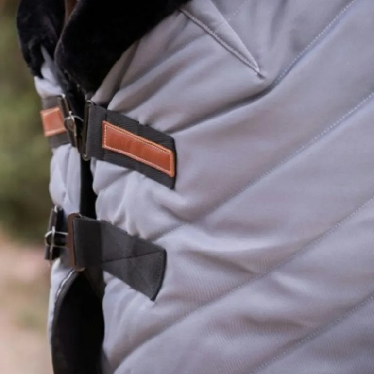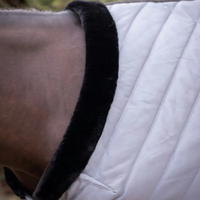 Pour plus de confort, un renfort noir en mouton synthétique est placé autour de l’encolure et apporte une touche de chic à cette couverture.