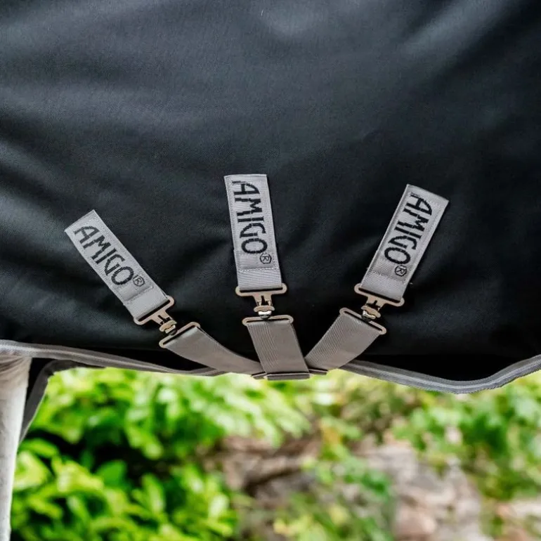Confectionnée dans un robuste nylon balistique 1200 deniers imperméable et respirant, la couverture Amigo Horseware assure une protection de qualité à votre cheval.