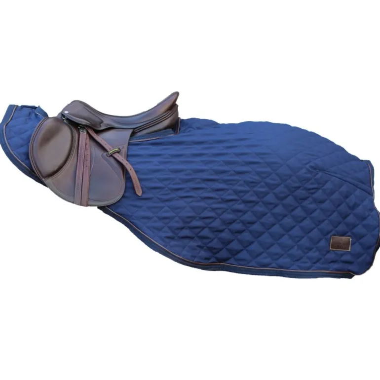 Cette couverture de monte se ferme sur l’avant de la selle grâce à une bande agrippante.