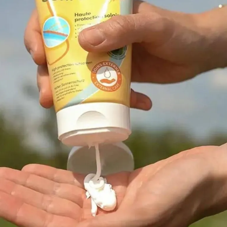 Cette crème solaire protège et hydrate les zones photosensibles de la peau du cheval.