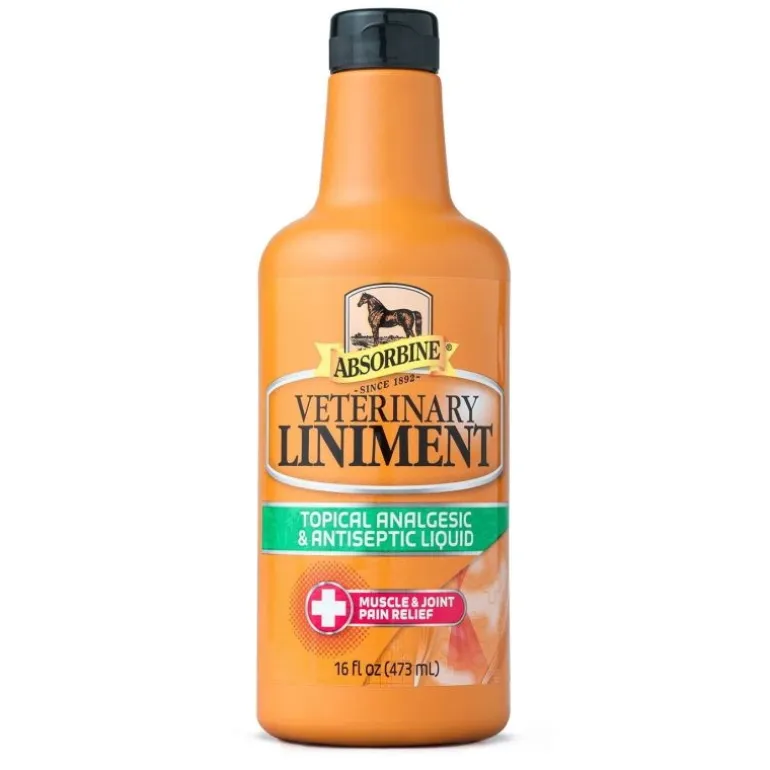 Le Liquid Absorbine Veterinary Liniment diminue les raideurs du cheval suite à un effort.