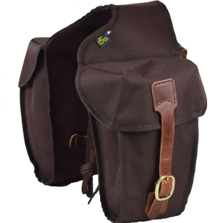 – Fermeture des fontes par un rabat d’étanchéité et deux sanglons d’attache en cuir végétal pleine fleur