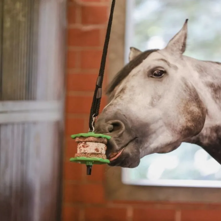 Le sandwich Delizia, à base d’herbes des prés, d’herbes et de légumes, vous permettra d’occuper sainement votre cheval au box comme dans son abri.