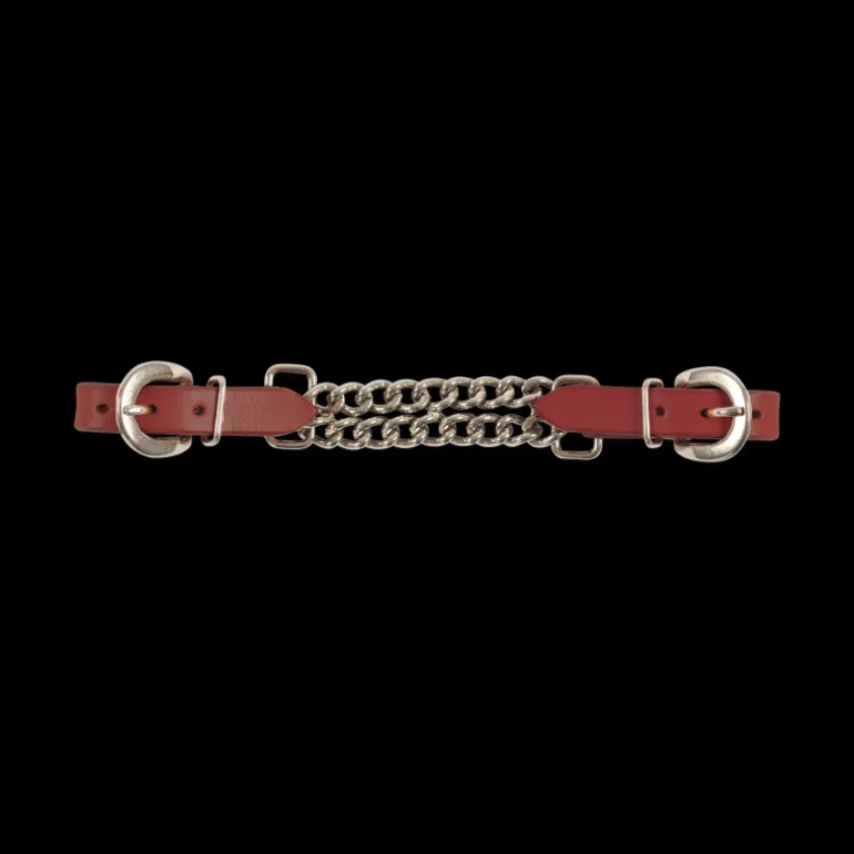 Cette solide gourmette pour bridon western est composée d’une double chaîne en métal. Elle comporte une attache