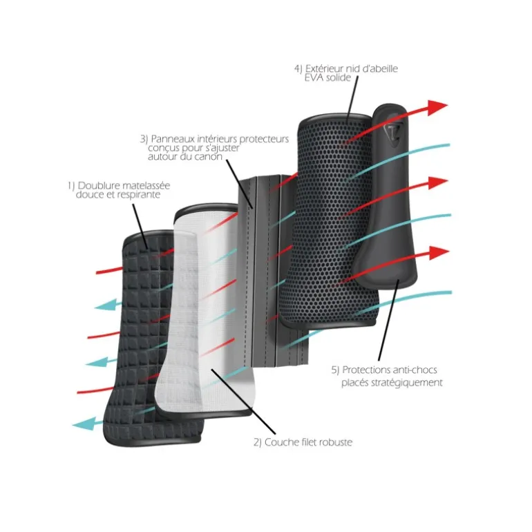 Testées en laboratoire indépendants, elles sont ultra légères, respirantes et souples tout en offrant une protection optimale aux membres votre cheval.