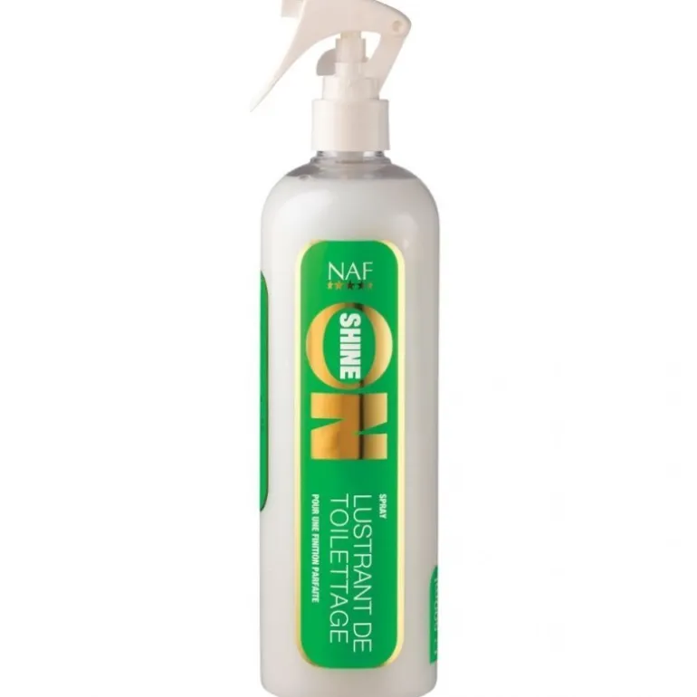 Produit indispensable en concours, le lustrant Shine On pour les finitions Naf apporte la touche finale au pansage de votre cheval.