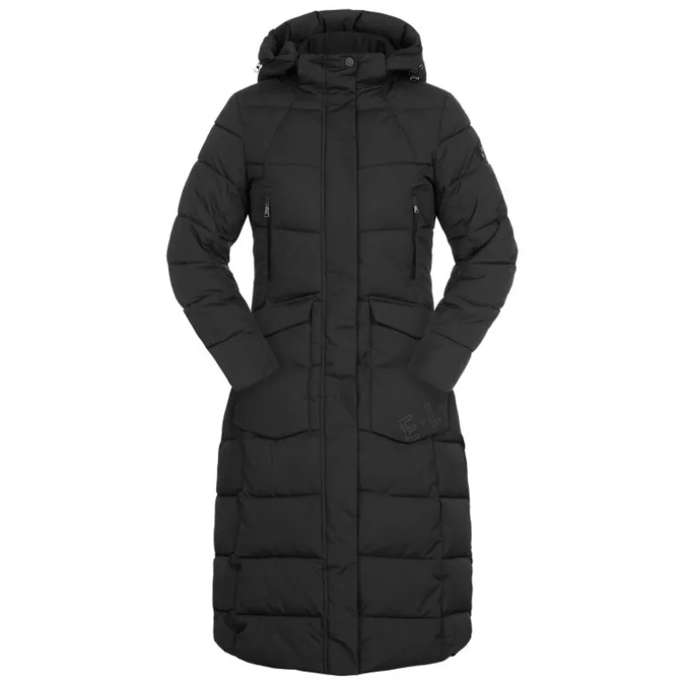 Le long manteau matelassé Saphira Advance Elt avec garnissage type duvet et doublure intégrale accompagne la cavalière lors de la saison hivernale.