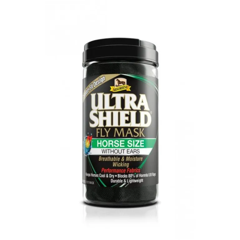 Le masque anti-insectes sans oreilles Ultra Shield de la marque Absorbine est conçu pour garder votre cheval dans un maillage de haute technologie aux diverses propriétés.