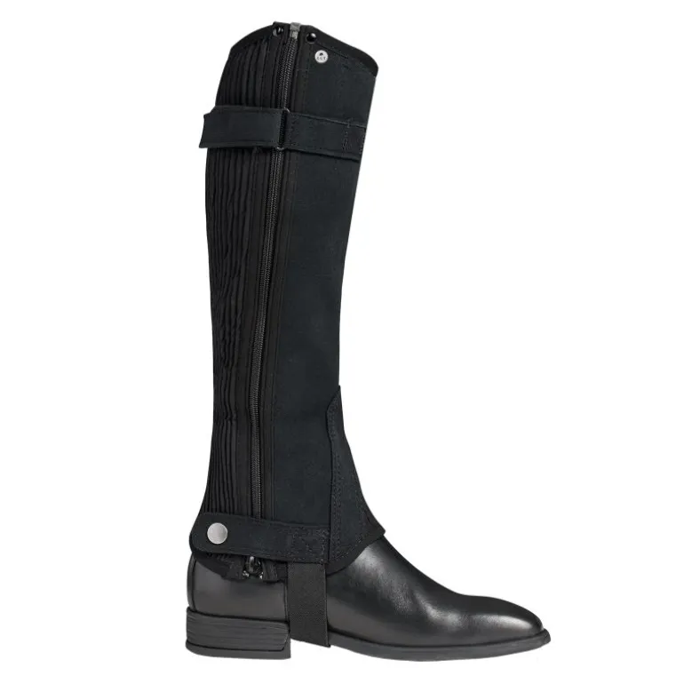 Les mini chaps extensibles Elastik confectionnées en amara épousent parfaitement les mollets pour un confort d’usage grâce à de robustes soufflets élastiques positionnés sur toute leur longueur. Le passage de pied est élastique sur l’avant pour un positionnement parfait.