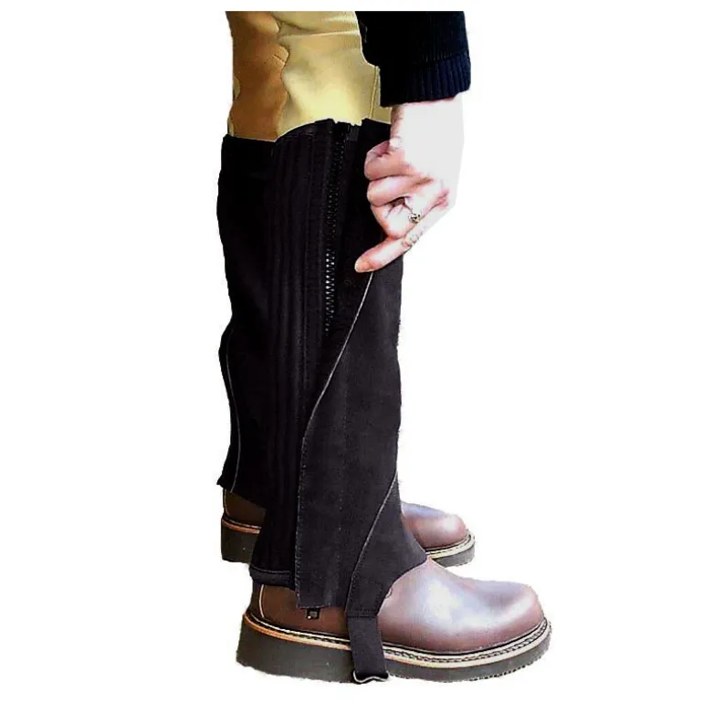 Confectionnées pour les plus jeunes, cette paire de mini-chaps à petit prix est équipée d’une fermeture à glissière élégamment masquée par un rabat. Elle comportent des basanes et un élastique sous pied renforcé par du cuir. La partie arrière est élastique pour un ajustement idéal.