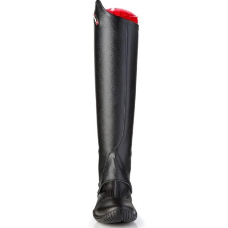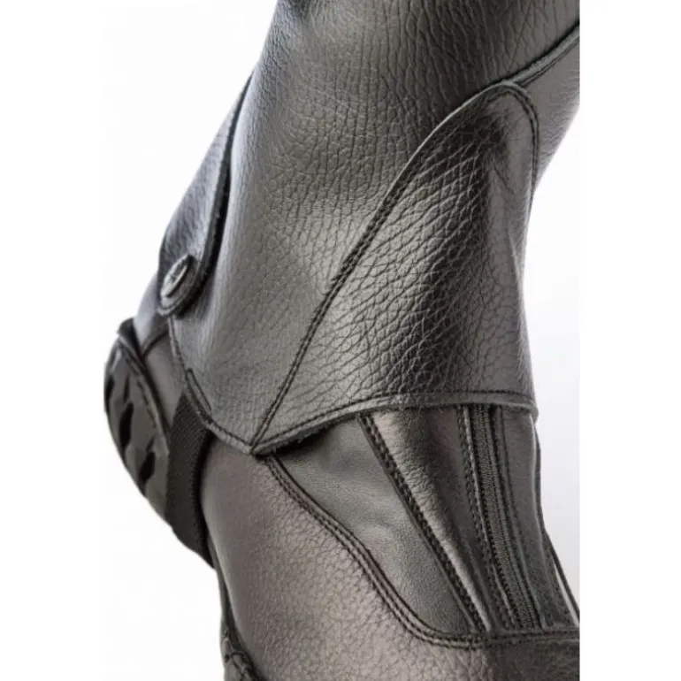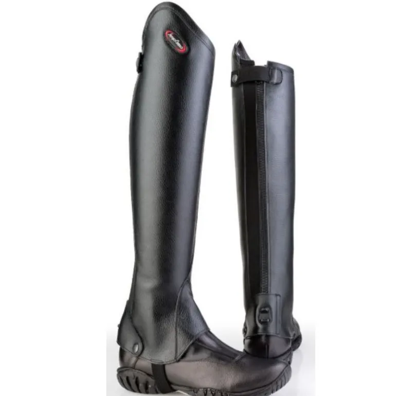 Ces mini-chaps possèdent des taquets d’éperons réglables, fixés sur la protection de zip.