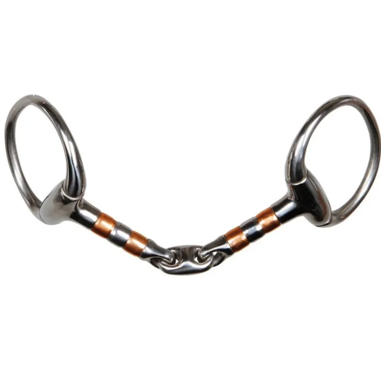 Stimulant la salivation durant le travail, ce mors à olives avec rouleaux en cuivre sera idéal pour les chevaux ayant tendance à venir s’appuyer et se crisper sur le mors.
