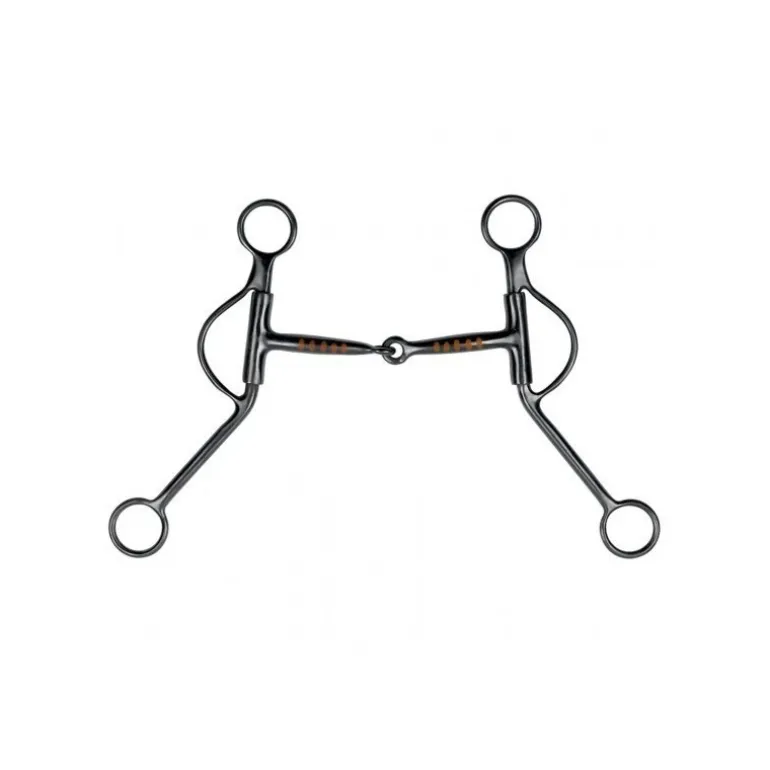Ce mors western est équipé de longues branches mobiles ainsi que d’un canon sweet iron strié de cuivre. Il permet de stimuler la salivation afin de détendre la bouche sensible de votre cheval.