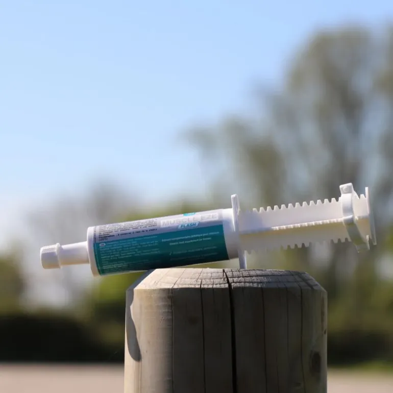 – Cheval : Donner 1 seringue directement dans la bouche du cheval après un effort intensif. Il est