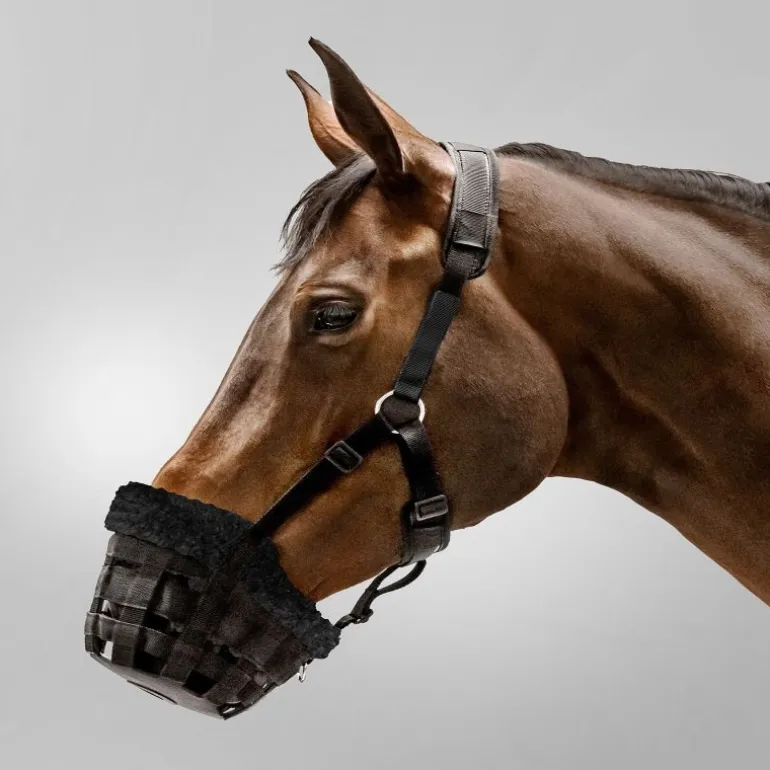 La muselière de pâturage Comfort Waldhausen empêche votre cheval de consommer de l’herbe en trop grandes quantités et l’aide en cas de fourbure ou de colique.