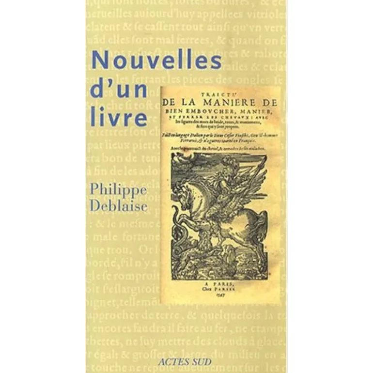 Ce roman raconte les errances d’un livre. Philippe Deblaise est libraire et sa spécialité c’est le cheval, il vend des ouvrages anciens et nous sommes fascinés par le décryptage de toutes ces traces que plus de quatre cents ans d’existence ont laissées sur et dans l’ouvrage en question ; un traité “de la manière de bien emboucher, manier et ferrer les chevaux”.