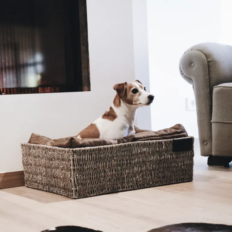 Pour le confort de votre chien, un moelleux coussin se situe dans le panier, dont la garniture est faite de fibres recouvertes d’un matériau durable, confortable et qui résiste à la saleté.