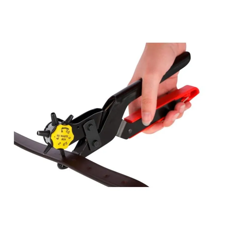 Muni de 6 embouts de perforation différents, la pince emporte-pièce de qualité perfore sans effort le cuir ainsi que le carton, le caoutchouc et d’autres matériaux.