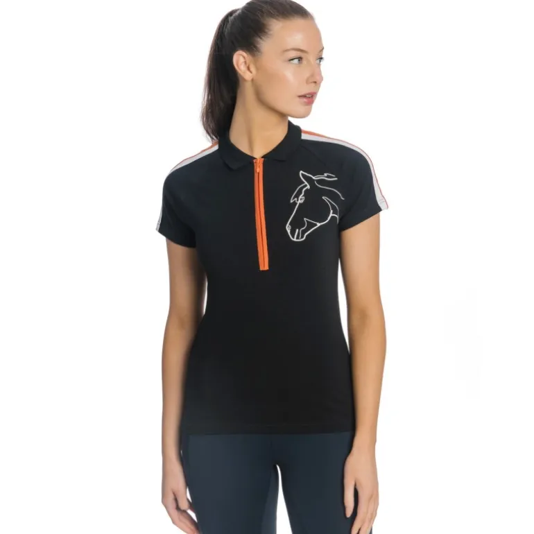 Fonctionnel et élégant, ce vêtement sportswear est équipé d’un zip de boutonnière pratique et tendance. Un galon de coloris contrastant au niveau des épaules renforce sont allure sportive. Une délicate tête de cheval est brodée sur le cœur.
