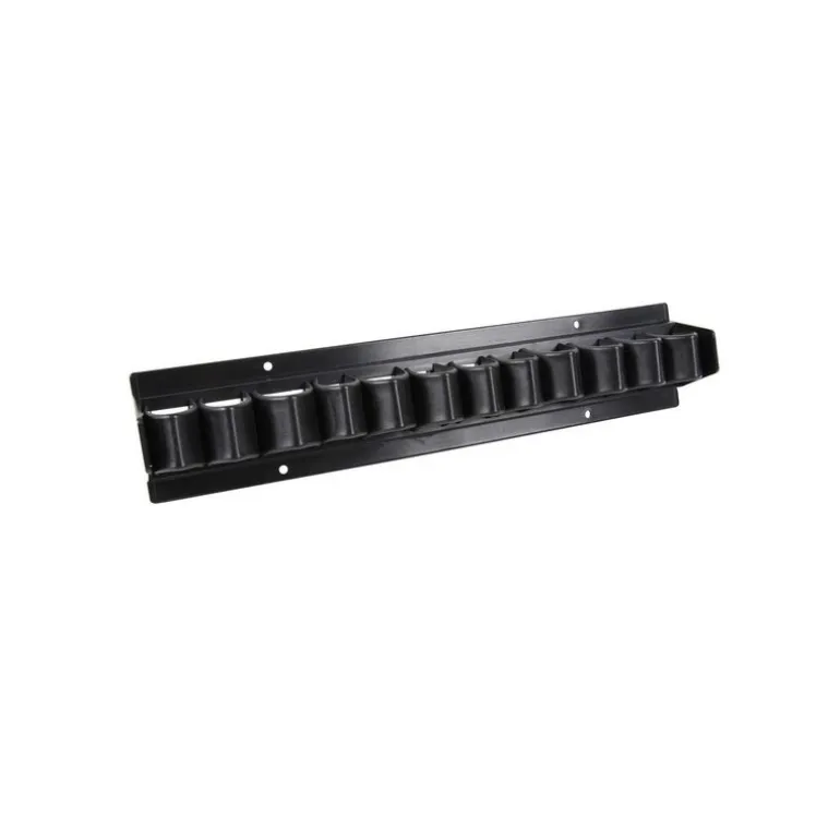Ce présentoir à cravaches en matière plastique noir Waldhausen se fixe au mur grâce à quatre trous permettant d’insérer des vis.