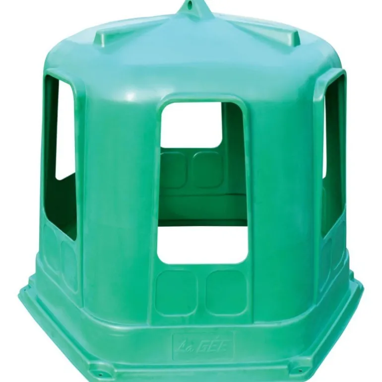 Stabilisé aux UV et résistant au gel, ce râtelier hexagonal petit format en résine allie légèreté et solidité. Pourvu d’un anneau de levage, ce conteneur se révèle très facile à déplacer manuellement ou mécaniquement. Six ouvertures avec rebords non blessants et gouttières permettent à six chevaux ou six poneys de s’alimenter simultanément tout en préservant le fourrage des écoulements de pluie.