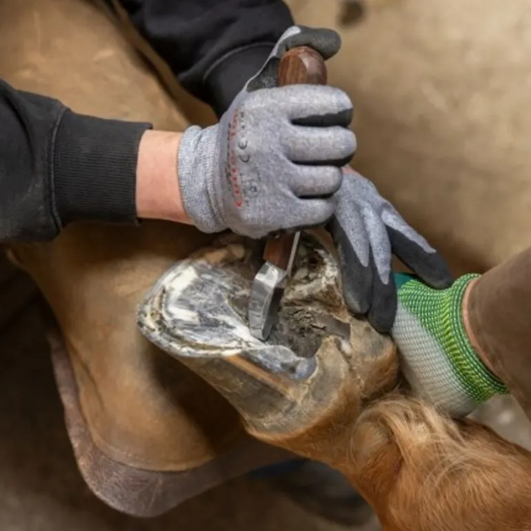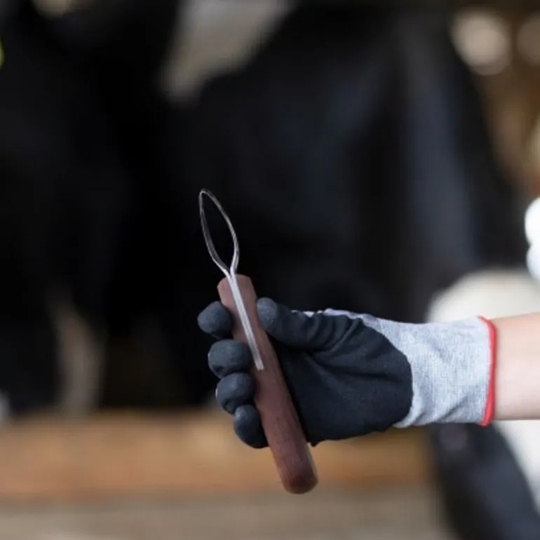 La rénette ProfiLoop est conçue pour une utilisation professionnelle grâce à sa lame à boucle pour un travail de part et d’autre de la fourchette ou de la sole.