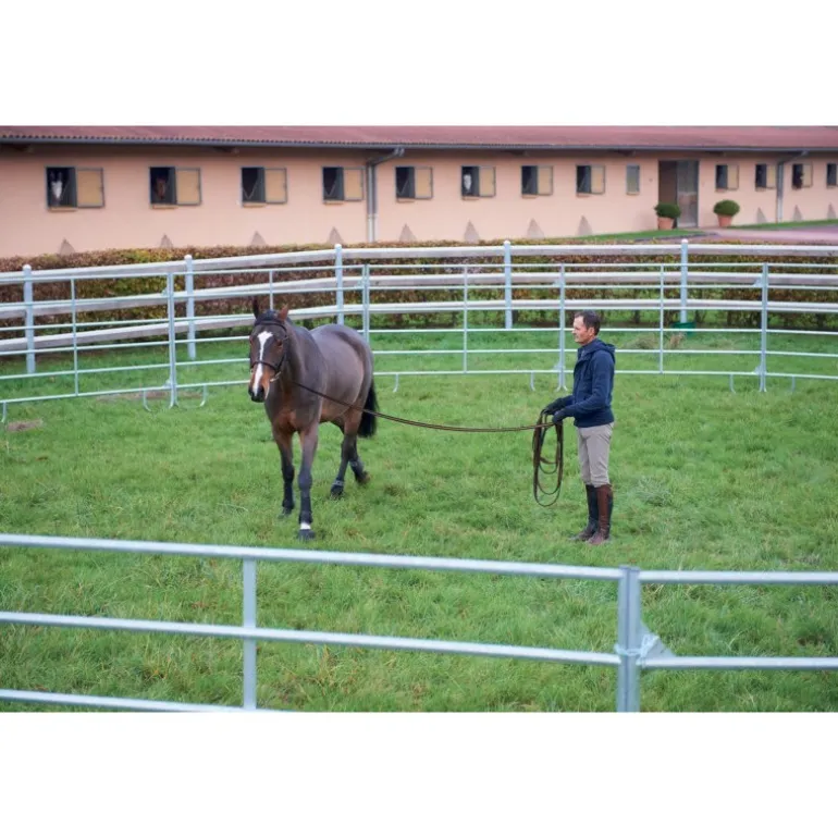 Solide et facile à monter, ce lot de panels en acier galvanisé permet de composer un rond de longe La Gée au paddock comme en carrière.