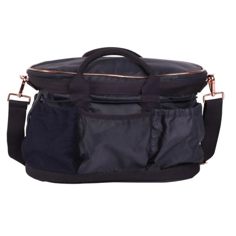 Le sac de pansage Just Ride Harry’s Horse en conçu en polyester avec des motifs losanges et des détails rose doré.