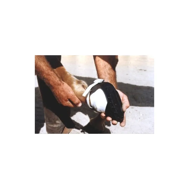 La sandale de soin Shoof s’utilise dans les cas de traitement d’un sabot pour blessure. Composée de polyuréthane très résistant, elle est légère et confortable pour le cheval et est réutilisable.