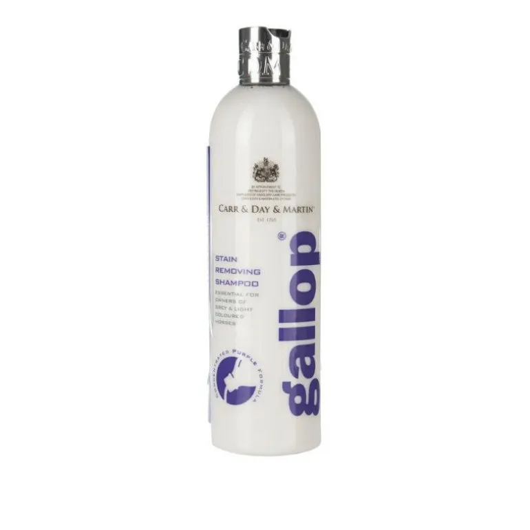 Shampoing Gallop détachant Carr & Day & Martin est idéal pour les chevaux blancs ou à la robe claire.