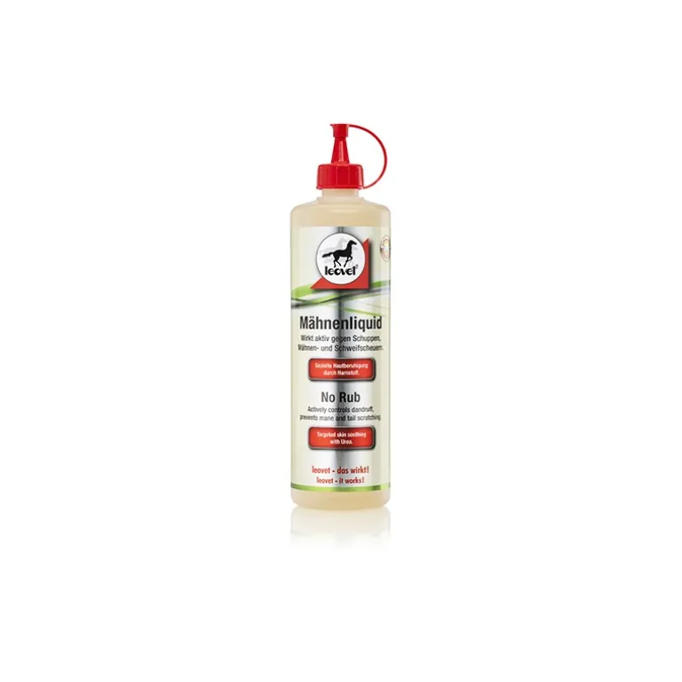 Formulé pour éliminer les pellicules des chevaux, le soin liquide Leovet contient de l’urée permettant d’assainir le crin et de calmer les démangeaisons.