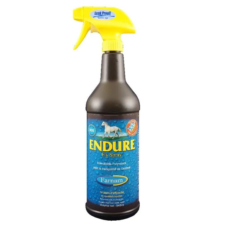 Avec sa formule originale, Endure Farnam protège efficacement votre cheval des les mouches, moucherons, moustiques, tiques ou poux et ce, même en conditions humides. Ce biocide en spray se vaporise dans l’environnement de l’animal pour une action longue durée.