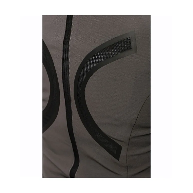 Fonctionnel, ce vêtement cintré dispose d’une fermeture zippée pour un maintien efficace. Trois boutons travaillés surplombent la glissière pour une allure chic et classique. Deux poches à zip sont ménagées sur l’avant de la veste.
