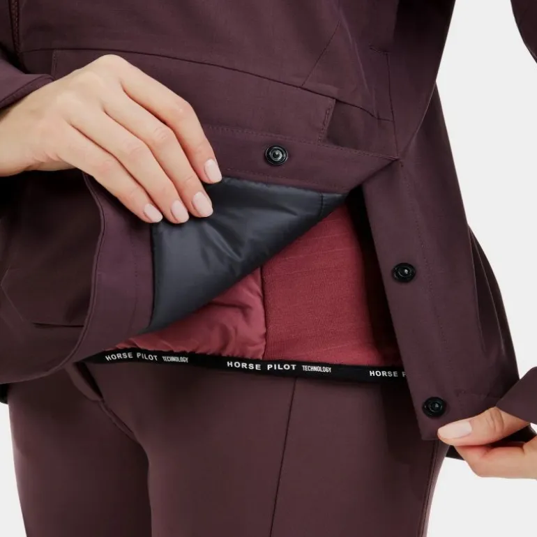 Elle dispose de toutes les caractéristiques techniques pour la pratique de l’équitation : une capuche qui s’attache, cinq poches extérieures, des ouvertures d’aération pour faire circuler l’air. Le bas du zip est raccourci pour ne pas frotter contre la selle. Le volume de la veste s’adapte grâce à des ouvertures sur le côté.