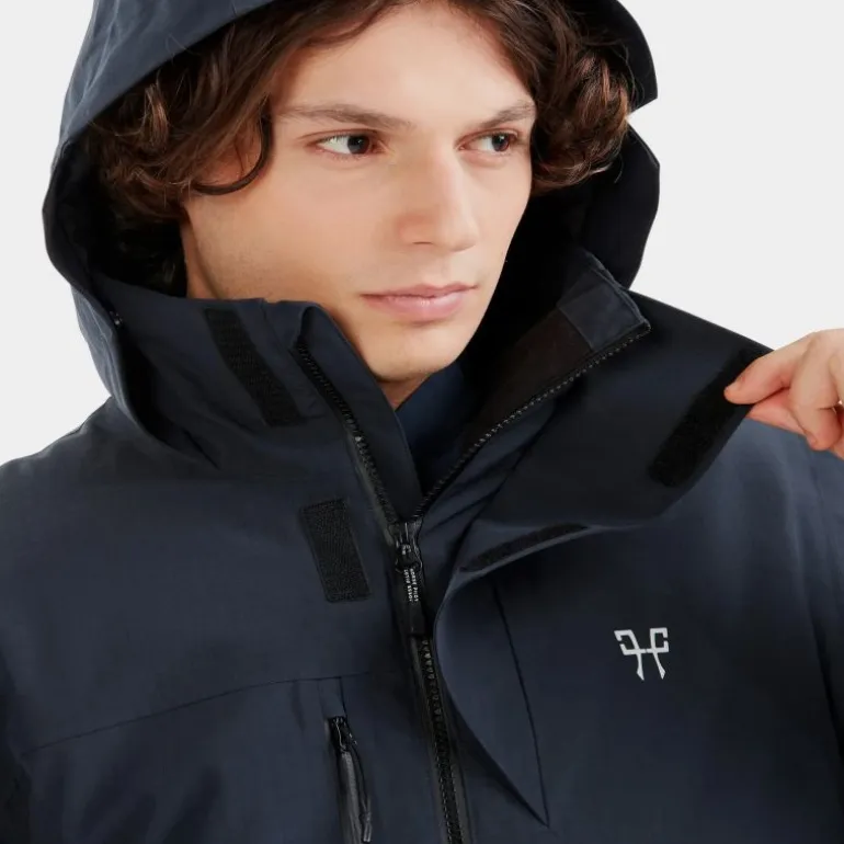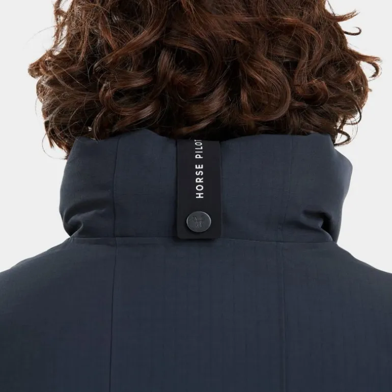 Elle dispose de toutes les caractéristiques techniques pour la pratique de l’équitation : une capuche qui s’attache, cinq poches extérieures, des ouvertures d’aération pour faire circuler l’air. Le bas du zip est raccourci pour ne pas frotter contre la selle. Le volume de la veste s’adapte grâce à des ouvertures sur le côté.